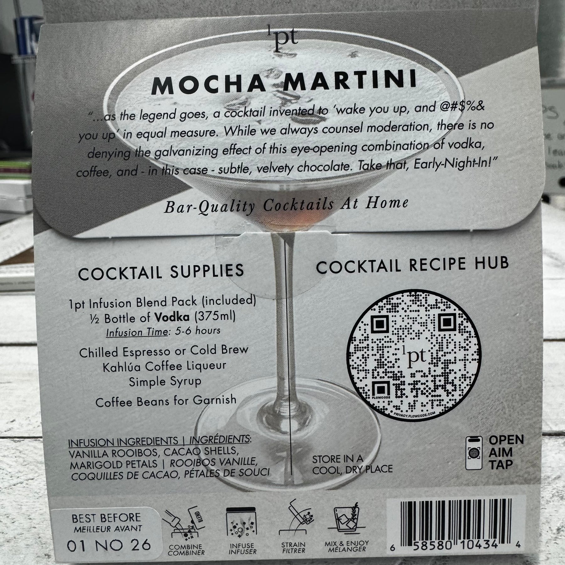 One Part is a family operated business helping you make all your favorite cocktails in an easy format. Select from Mocha Martini, Ginger Hot Toddy, Sangria Tinto and Midwinter Mulled White. Will serve 4-6 cocktails.