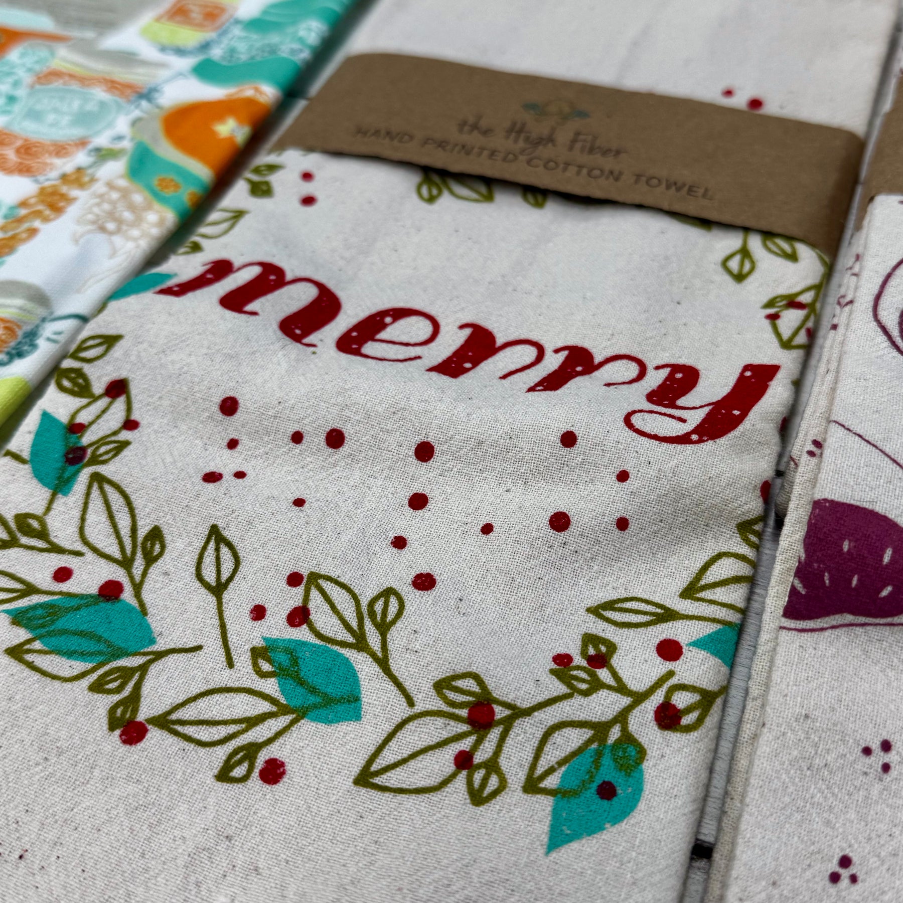 Tea towels designed by The High Fiber in Ashville and Outer Banks artist Carolina Coto Art.